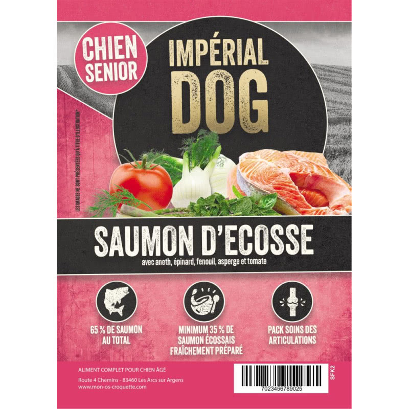 Croquettes sans céréale superfood pour chien sénior, préparées avec du saumon d'Ecosse, de l'aneth, de l'épinard, du fenouil, de l'asperge