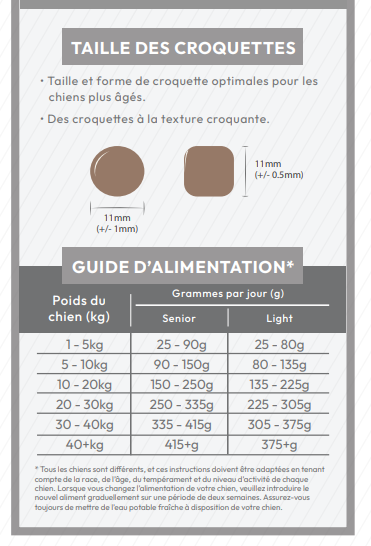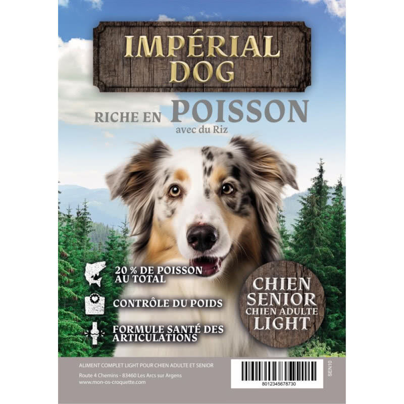 Chien sénior croquettes super premium light poisson