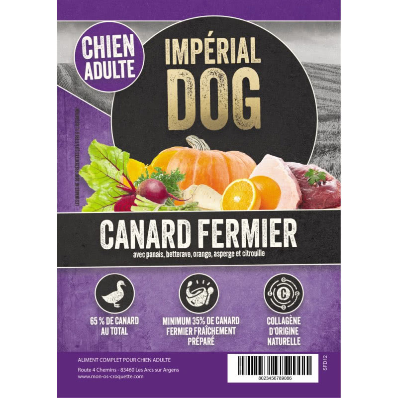 Canard Fermier avec panais, betterave, orange, asperge et citrouille pour Chien adulte